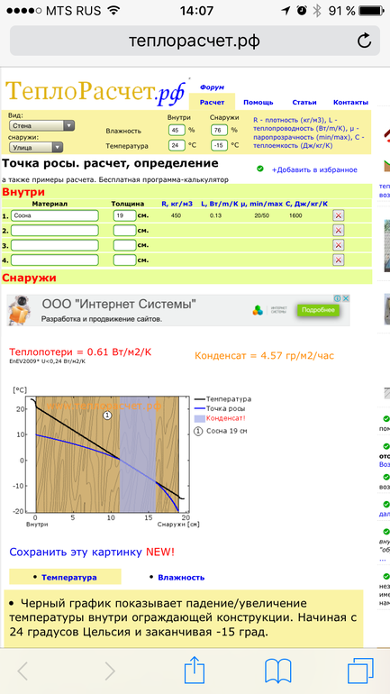 Конденсат пойдет если сместить точку росы и сделать утепление внутри, а не снаружи