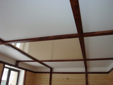 обыкновенно, доска с замком, а балки - это декоратив, они отдельно продаются и легкие, а нижний это натяжной