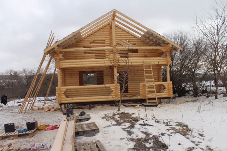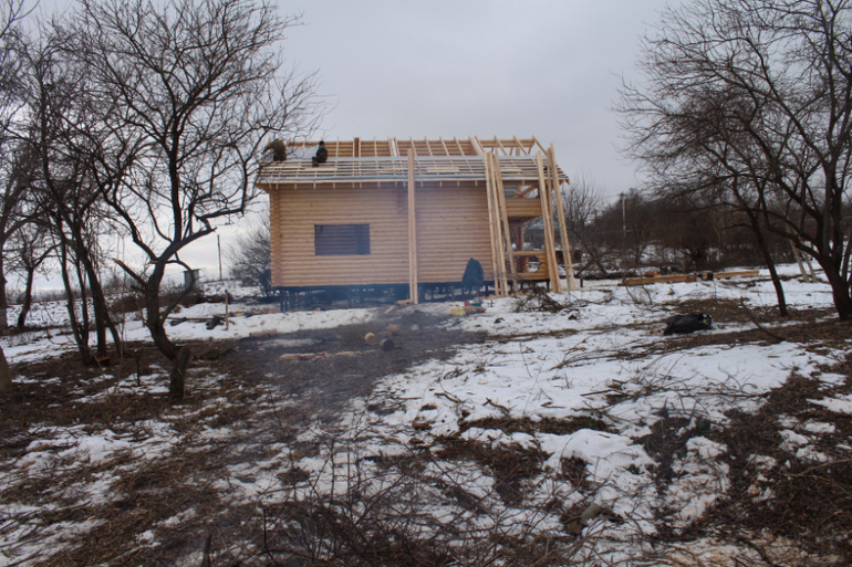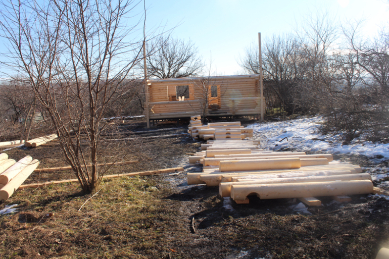 ОЦ, диаметр 20-22, площадь 126 кв. В планах на сезон- поставить крышу, покрасить, подвести воду и электричество, поставить забор. На большее, боюсь, не хватит финансов. Забор ставить начали. С этим вообще отдельная история...наш участок 25 лет пустовал, и на нем, по рассказам, собирались местные алкаши что бы выпить. Бутылок море...мы вывезли все, но каждый раз, приезжая, обнаруживали свежие. Все думали, ну ладно раньше- было много деревьев, есть где им посидеть, но сейчас лишнее все выпилили, участок как на ладони- кому надо туда приходить и бросать бутылки?