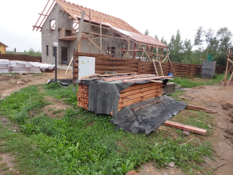 Участок пришлось отсыпать, покупали дополнительный песок под фундамент и землю на участок.