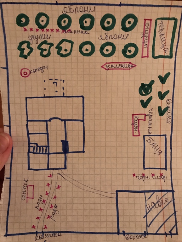 По поводу бани Ольга правильно написала: далеко бегать замучаететсь. Теплицу нужно ставить на самое солнечное место, где у вас такое? Плодовые деревья тоже любят солнце и возвышенность. И как без огорода?