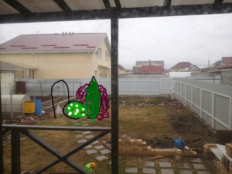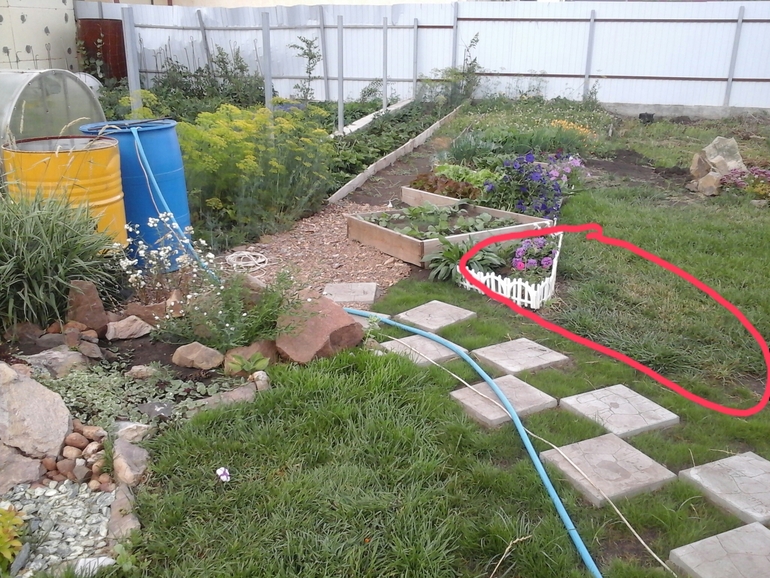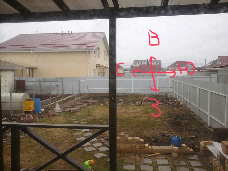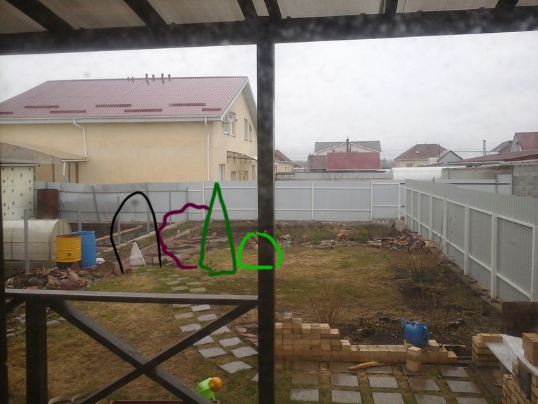 Цель итоговая-закрыть с помощью этой композиции вид на грядки с веранды. Собственно, главная смотровая точка на эту будущую клумбу-это как раз веранда и есть. С других сторон просмотр будет мельком, мимоходом.