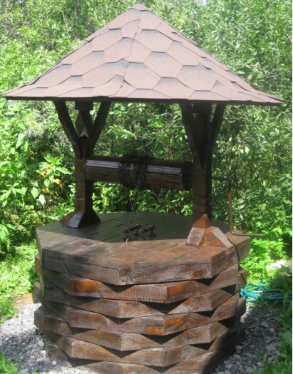 У нас страшенный колодец бетонный торчал прямо посередине участка. Его по контуру обили деревяшками. Из остатков железа для крыши и сайдинга получился вполне симпатичный домик. С каждого бока по ручке на крыше домика и можно снять крышу как крышку.