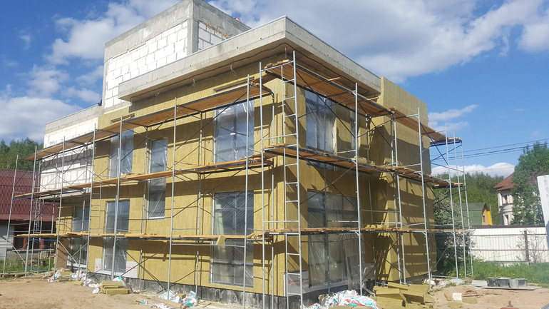 За это время работы практически не велись. только в феврале поставили окна. Поставили профиль КБЕ эксперт 70 мм, стеклопакет 40 мм с энергосберегающим стеклом. Хотели Рехау делайт, но разница в 56 тысяч победила фигурный штапик)) Так как мастер по инженерке все время откладывается, решили делать фасады. Заказали в понедельник утеплитель, который привезли на следующий день.Такой скорости мы не ожидали, у мужа этот день был распланирован, так что пришлось ехать принимать и оплачивать мне. Заодно проверила логистику. От квартиры до дома путь на маршрутке и пешком занял ровно 20 минут, обратно 25 минут. На обратном пути замерила по секундомеру путь до школы - ровно 12 минут пешком. Правда, я не уверена, что именно в эту школу отдам младшего сына. Сегодня, наконец, начались работы по крыше и фасаду. Да, еще выставили квартиру на продажу. Если продастся быстро, то заедем к новому году. Если нет, то, наверное, к следующему новому году хотя бы в недострой.
