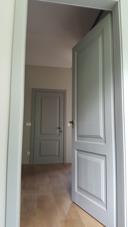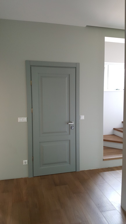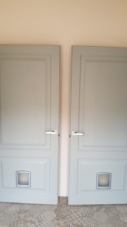 Дизайн помещенийЖдала в феврале. но мастер оказался своеобразным))). Вчера только соизволил поставить. Сделал очень хорошо, мне нравится. Двери из массива ясеня, покрашены. Цвет серый. На фото немного искажен. В двух дверях калитки для кота. На магнитах. Что бы мог ходить в гараж, где будут стоять его миски и лоток. это на первом этаже. На втором такие же, только из массива клена и белые. Осталось плинтуса сделать.