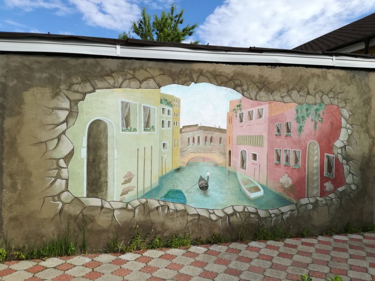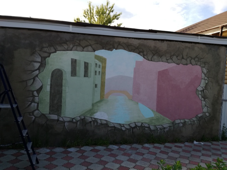 Ох, у нас соседский гараж портит вид своим унынием((( Раздам детям кисточки и краски, хотя б на первое время, пусть побалуются) Очень красиво у вас получилось!