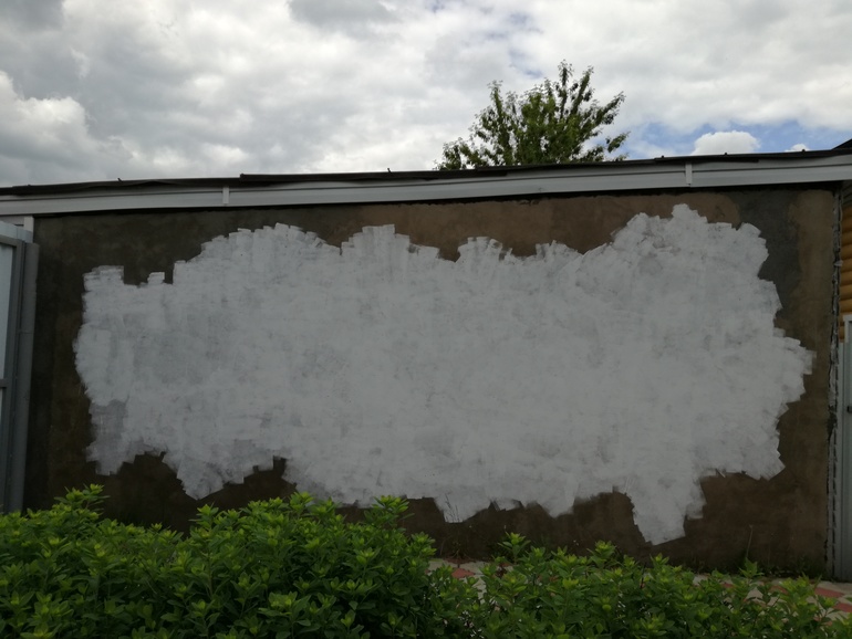 Баня, гаражВот такая задачка встала передо мной в эти выходные. Он был заштукатурен. Смотрел своей унылой серой стеной в красивый ухоженный двор)