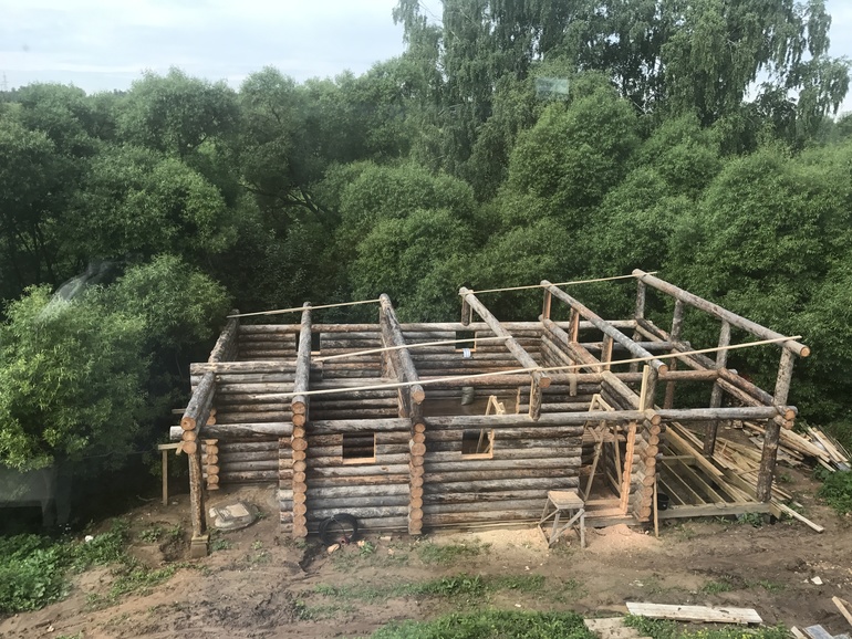 Так как дом у нас немного необычный, то и простая избушка с двускатной крышей нам никак бы не вписалась, поэтому решено было делать односкатную, как бы сочетая современность с традициями деревянной архитектуры.