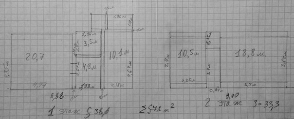 На мансарде: 2 комнаты 18 и 10 кв. м.
