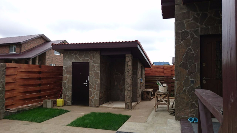 Построили небольшой хоз.домик. Ждем когда привезут ворота и калитку.