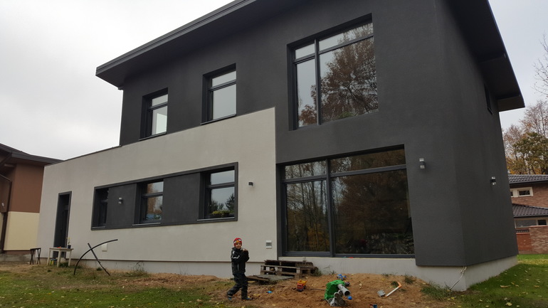 С покупками)) а мы ...мы редиски не вывели провода по фасаду. Только на землю...то есть фонари нам только в плитке светят)))