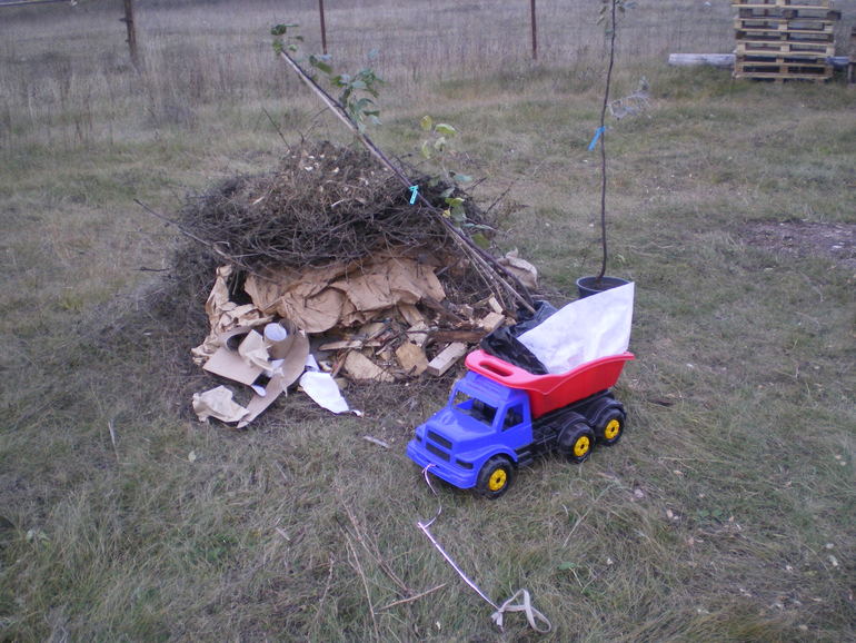 ну и убирались немного на участке. Казалось мусора мало поначалу. Когда раз 15 сходили на мусорку, поняли, что надо было вызвать машину, хоть п/э сдать на переработку.