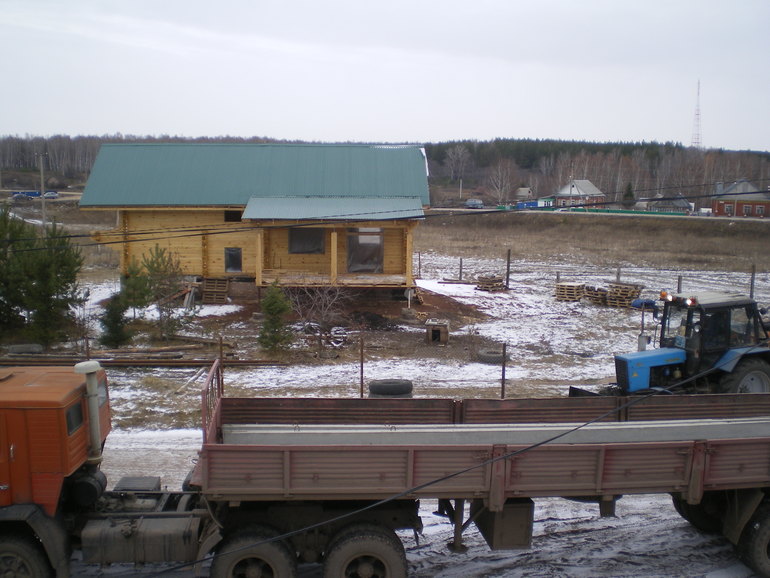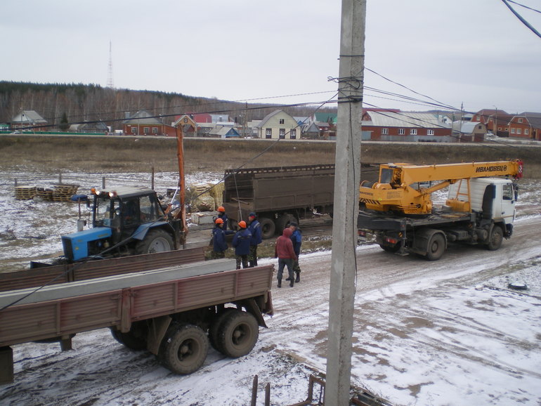 Здесь трактор бурит яму. В грузовике наш столб похоже.