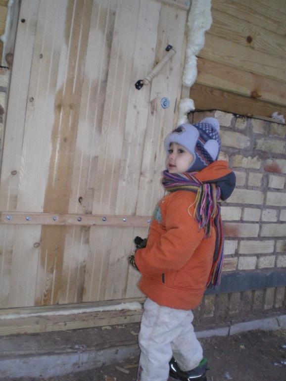 дверь в воскресенье поставили. Заходим уже как в дом, а не проходной двор. Купили 4 шт шпунтованной доски по 4м, на 1380 руб. Замок за 400, и ручку 60 руб. Надо еще наличники смастерить. За два дня с зятем сколотили.