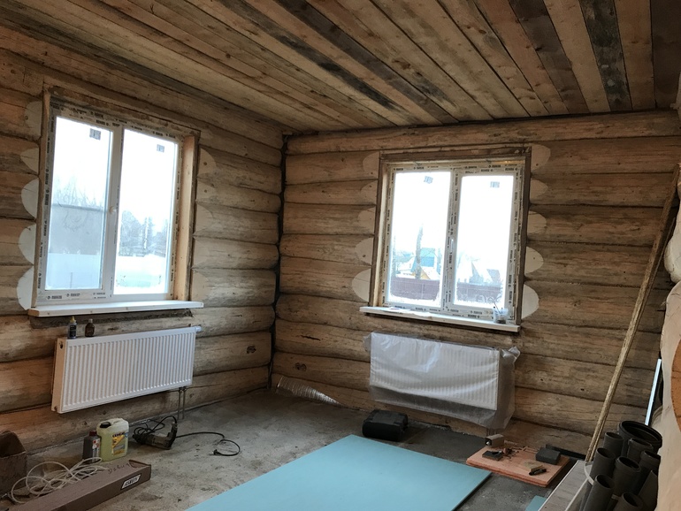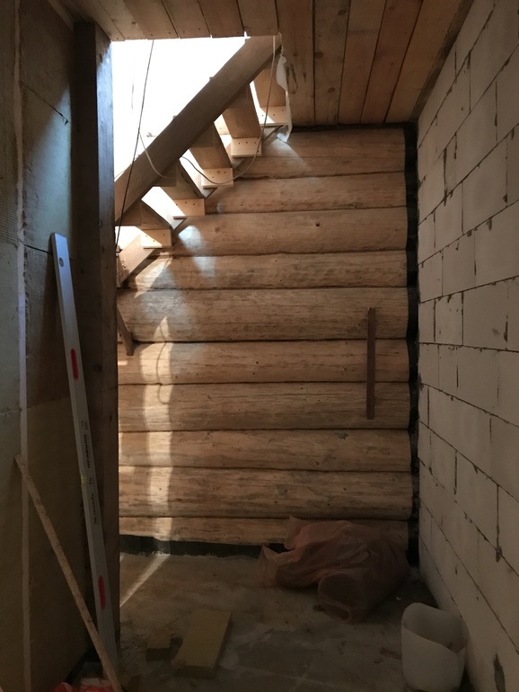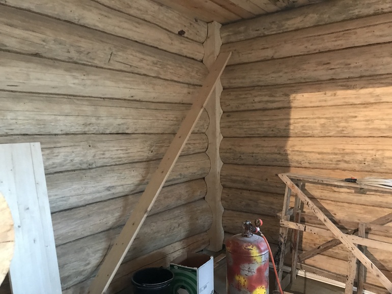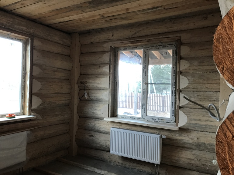 Также у нас сруб в лапу, были сложности с декоративностью углов, вот что строители сделали