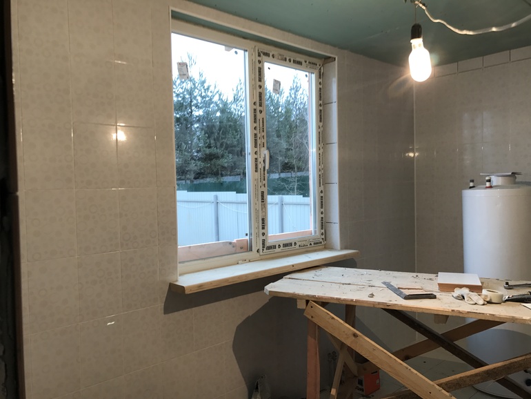 Ещё сделали скосы по бокам окна, иначе никак...