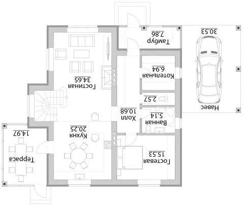 У нас котельная получается почти 21 м3 (нужно 15 м3), можно её уменьшить в пользу маленького с/у. А гостевая будет для постоянного проживания мамы)