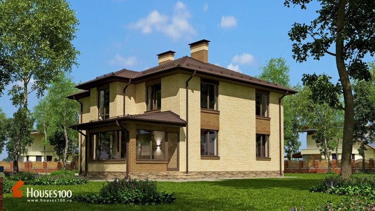 Дом 2 полноценных этажа, юг со стороны кухни (сверху плана).