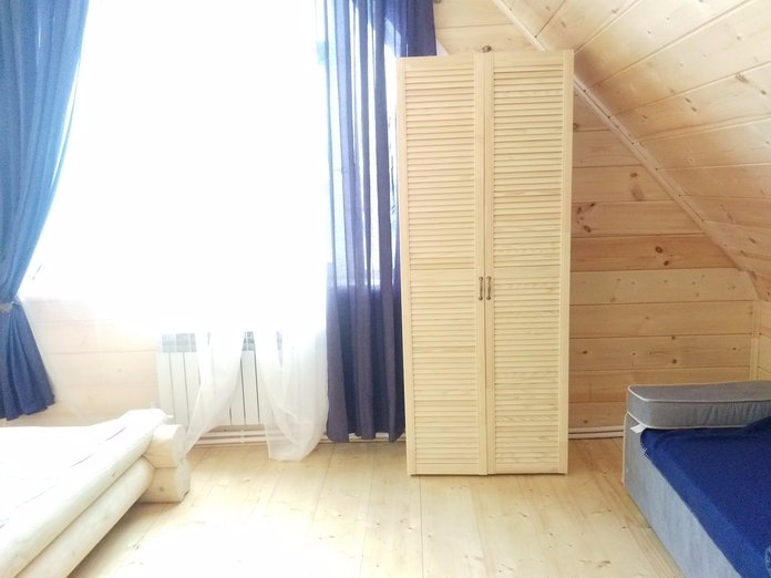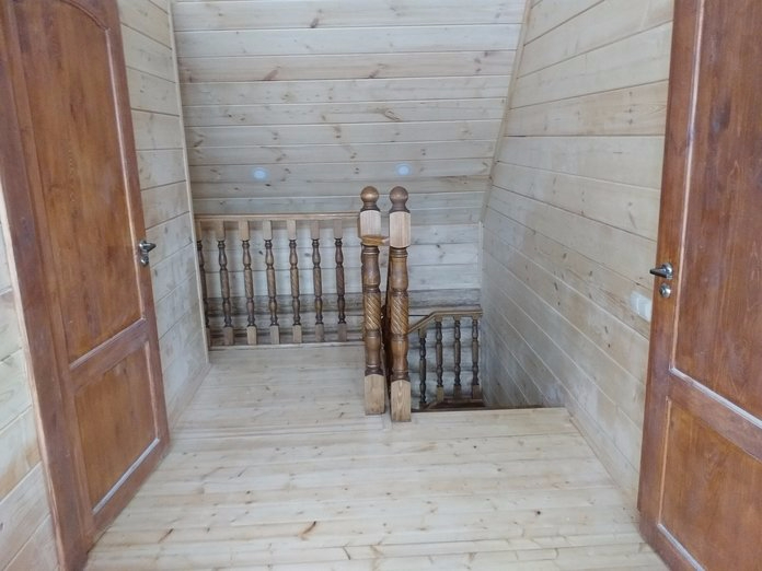 В каждой по рубленной кровати и дивану. Холл,Балкон. Во всем доме включая террасу тёплые полы.