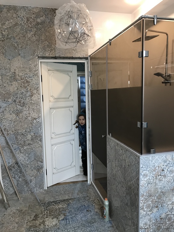 За плитку убила бы, рукожопы!!!! Хорошо, что не треснула нигде. Двери шикарные!