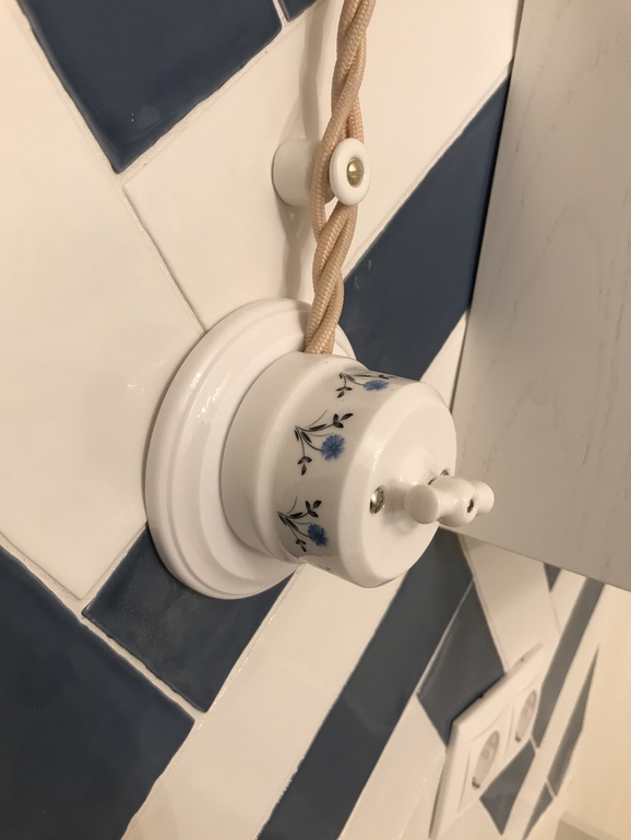 Радости жизниЦвяточки на керамических выключателях, ретро проводка и мои белые двери с бронзовыми петлями
