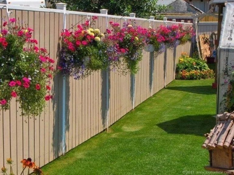 Дикий виноград за 3 сезона весь забор заплетёт и будет красиво. На зиму его можно украшать как ёлку игрушками и поделками, весной к пасхе тоже всякими штучками можно декорировать. У тебя будет постоянная экспозиция красивостей и поле для творчества.