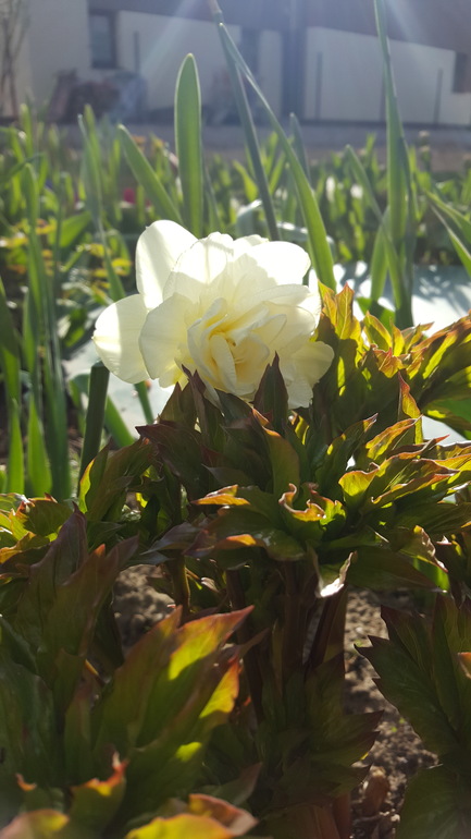 два из них сорт "Германия" ярко розовые цветы, один " ред джек" ярко красные цветы. Сажать будем с северо-восточной стороны дома.( здесь где они и стоят сейчас).