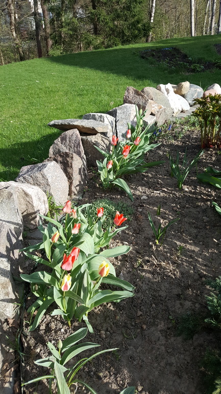У вас участок огроменный? Очень красиво. У нас крокусы еще цветут. Хочу посадить что -то вечнозеленое и невысокое по бокам от калитки , на ум приходит только можжевельник ,