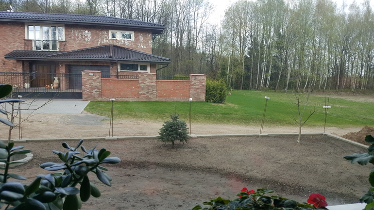 Сделалали проект ландшафта и тротуарного мощения. Планируем летом начать работы по мощению. Делаем забор с переднего фасада.