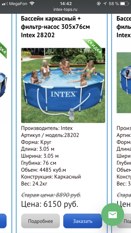 Сейчас купили малюсенький бескаркасный. Всего 2 метра в диаметре с малюсеньким насосом. Высота где-то 40~50 см. Коле бы старый бассейн хотелось, Мише более чем хорош, но лучше бы больше был. Наташе слишком много. Всем не угодишь. А мне в самый раз, я сегодня караулила Наташу, сидела и охлаждалась.