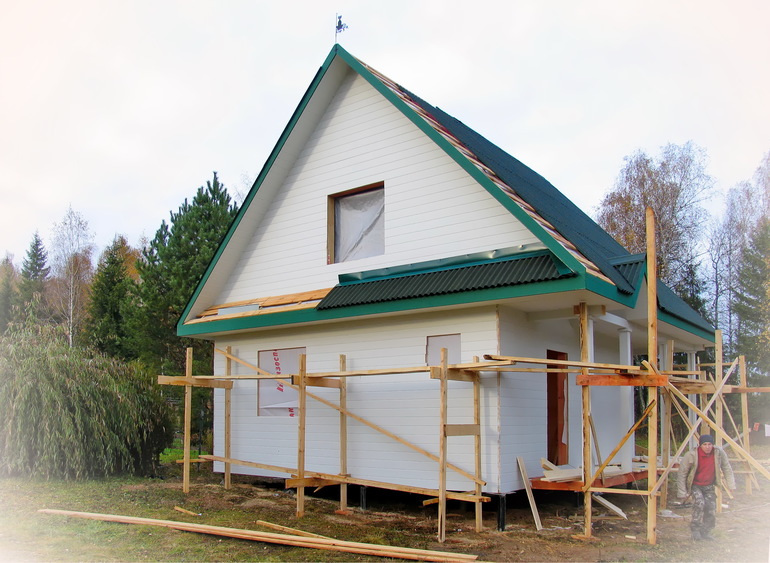 Долго мы вынашивали эту идею, даже участок купили два года назад в СНТ Верховье, это по Минскому шоссе, но по разным обстоятельствам откладывали стройку. И вот, наконец, в начале сентября решились. Проект был такой, - небольшой, двухэтажный, уютный. С террасой, пусть и маленькой, зато есть где посидеть вечером. Решили делать на заказ под ключ, строила компания Новгородские дома. Сначала муж думал сам закупить материалы и собирать потихоньку, но когда почитали отзывы, сколько там нюансов при строительстве бывает, решили, что дешевле будет один раз вложиться и заплатить профессионалам, чтобы без 1000 переделок потом.
