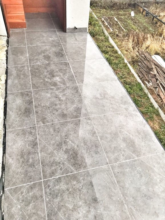 Ну и плитку положили на балконе и козырьке, можно смело встречать осадки.
