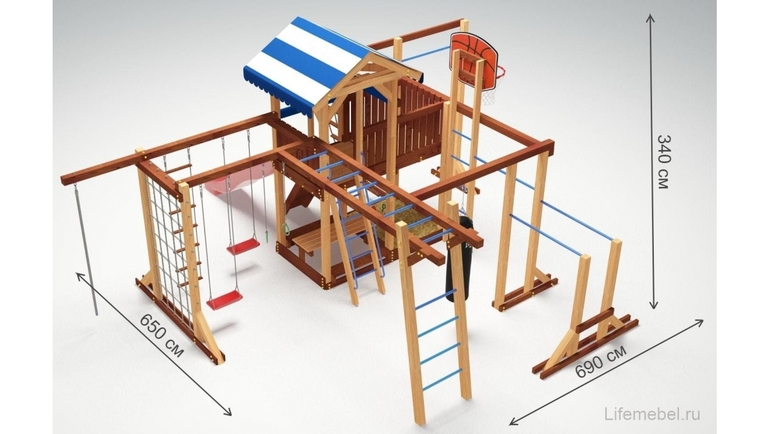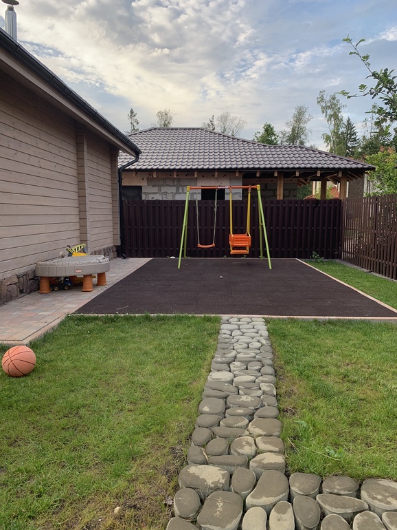 Вот вот у каждого покрытия свои минусы. Какие мы то менять что-то это для нас сложно. Резиновые покрытия от солнца портятся. Хотелось сделать сейчас и основательно. Ребенку ещё год скоро, поэтому думала универсальный комплекс, гости очень часто у нас, все с детьми... Вот такой думали комплекс поставить он называется семейный, и детям можно и взрослым...