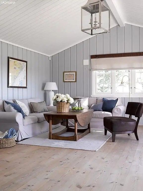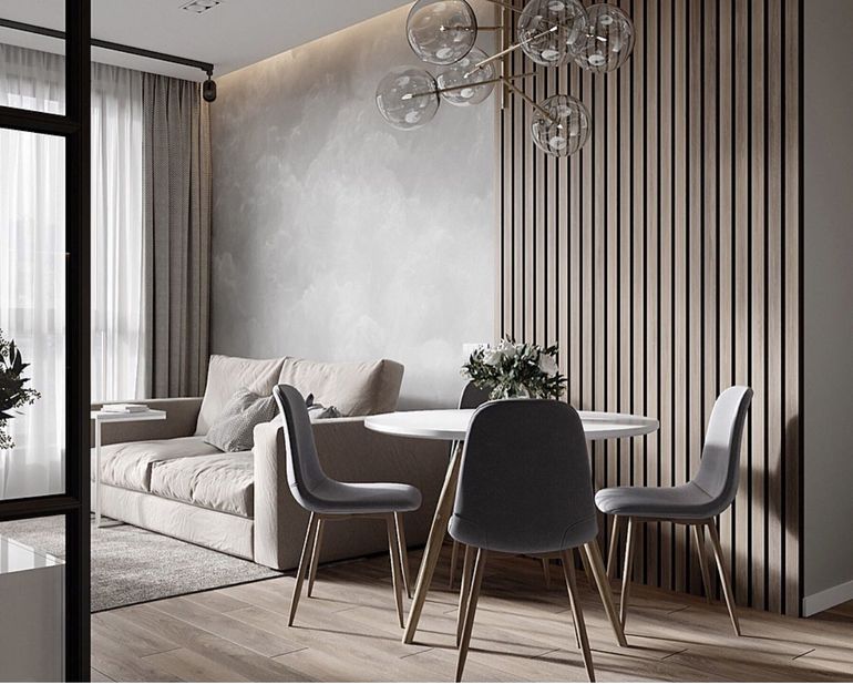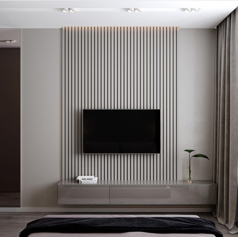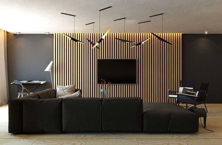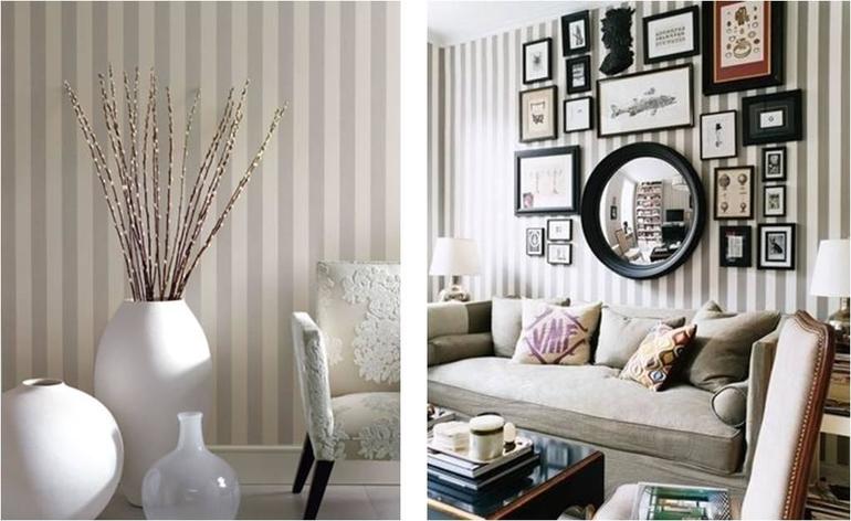 Да не за что ) Полосы - это уже на ваш вкус )) лично я бы все стены не стала делать под брус, но если нравится такой стиль то можете... Можно какие-то так выделить, а какие-то оставить. Или, допустим зону за тв, или наоборот, за диваном. Можно и обои, есть вполне не вырви глаз полоска, от которой в глазах не рябит, тем более если только на акцентных стенах использовать и комбинировать с однотонными. Опять же рейки деревянные тоже можно в ход пустить для стен... тут полет фантазии, и если с ней не густо, опять же вопросы к дизайнерам, тем более, если есть такая возможность (вы писали, что изначально балку дизайнер рисовал вроде )) Несколько примерчиков навскидку: