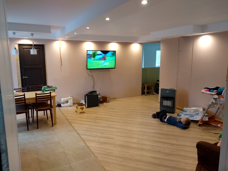 Когда делали потолок, младший ребенок как раз родился,я не ездила туда смотреть,а он вообще получается не подумал о потолке, признаёт,что низкий,но ему это не мешает говорит,а меня просто душит такой низкий потолок