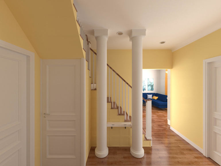 Выбор материаловВ доме нужно изолировать подвал от 1 этажа - там одна лестница переходит в другую. Фото из дизайн-проекта.