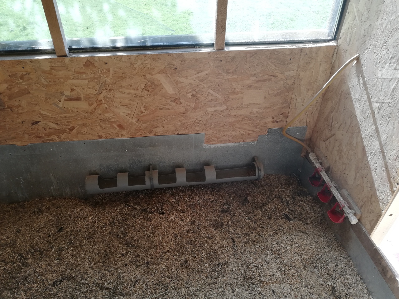 Кормушка и поилка. Ведро с водой в предбаннике расположено.