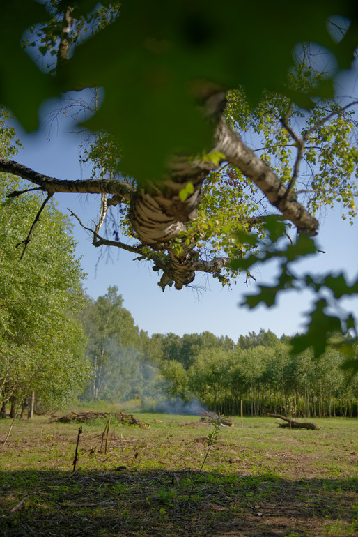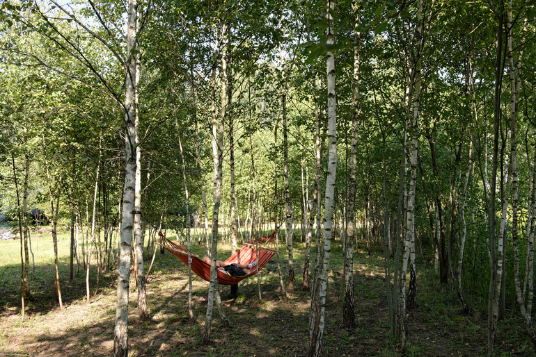 Вот наша "лесная комнатка", в ней очень хорошо прятаться от жары, натянув гамак между двух берез, а поваленную березку использовать вместо скамейки. Она находится на территории гос леса, но мы считаем её своей :)