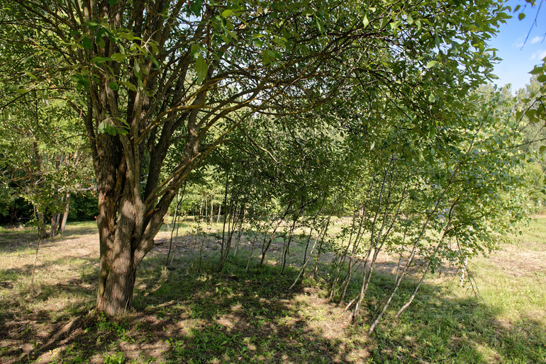 Деревья на нашем участке, мы не уничтожали, будем постепенно их заменять фруктовыми, а пока они создают уют и тень, можно натянуть гамак и поспать.