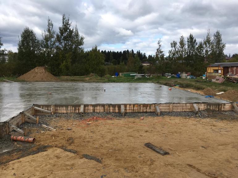 в прошлом году мы только разровняли участок и залили фундаментную плиту.