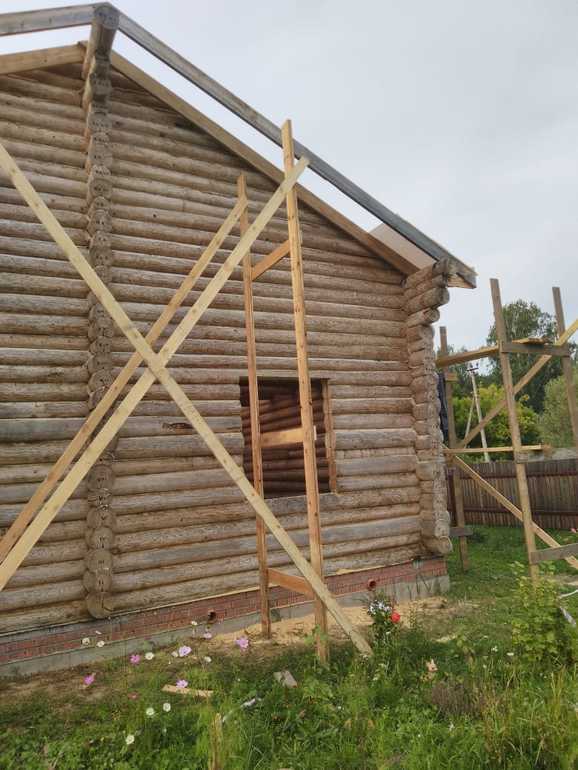 Оконные проемы сделали пока на первом этаже.Для конопатки,было куплено три мешка джута,нужно купить ещё 6.