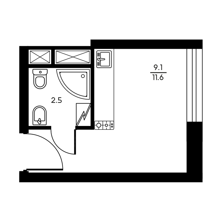 Ну да. Моя была 11,4м2, соседи 17м2, были и из двух комнат, но без кухни, люди из одной комнаты делали кухню, но тоже маленькие. За 11,6 цена должна быть адекватная, а эти продают за полноценную однушку.