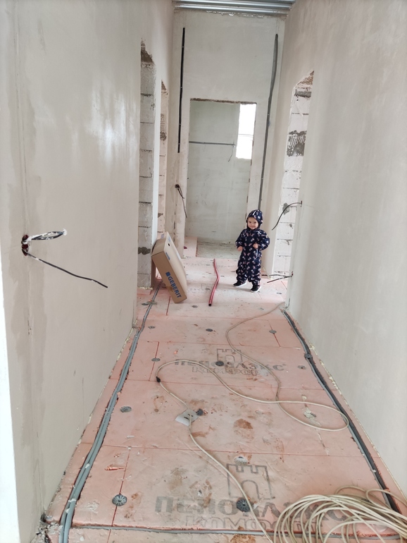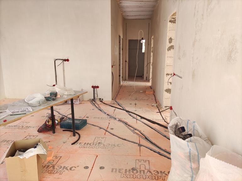 Самый большой вопрос на сегодняшний день стоит в стяжке, делать ее до окон опасно из-за возможных холодов, с другой стороны мы хотим, чтобы до приезда окон она уже была и высохла. Вопрос остаётся актуальным, как бы поступили вы? Сантехник боится, что кто-то из рабочих может наступить на свежий теплый пол и придется переделывать его, опять-таки боимся мороза, чтобы вода в полу не замёрзла. Уже думали прикупить тепловые пушки, но без окон они будут греть улицу.