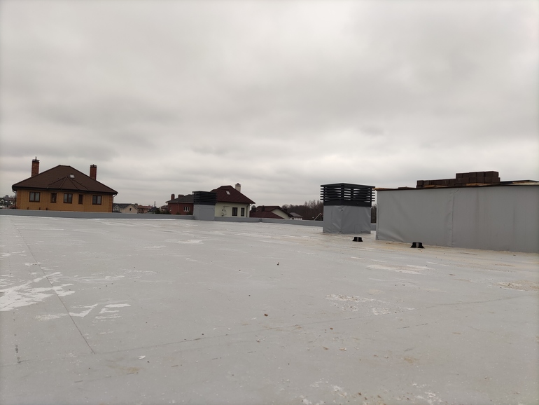 Установили блок кондиционера, чтобы сразу уже был и мы уже не думали о нем, но все равно придется подключать внутренний блок и доступ нужен будет к крыше, а мы так срочно его ставили, чтобы поскорее закрыть блок на крыше.