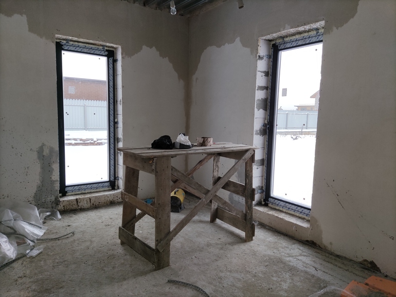 Не просохло, да понимаем что рано, поэтому пока они откосы будут делать, а потом все остальное. Спасибо!)