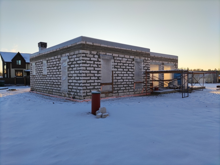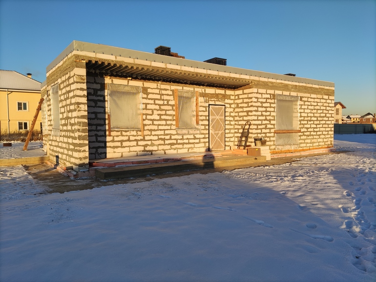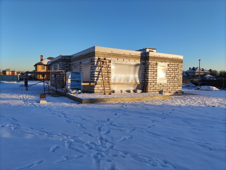 Строительство: от фундамента до крышиВесь этот месяц можно было назвать "сплошные проблемы" и "новогодние праздники". Этот месяц был самый напряжённый, самый нервотрёпный. Случилось самое долгожданное событие этого года - нам поставили окна :) Сфотографировала дом последний раз без окон.