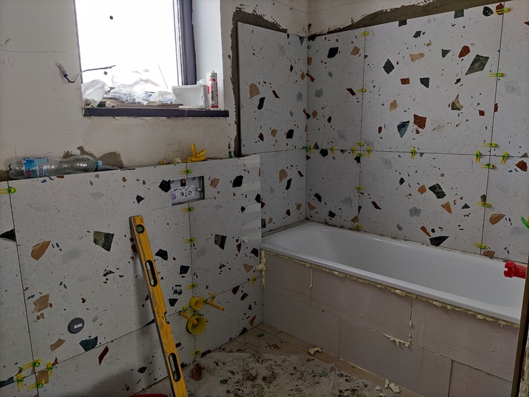 С плиточниками вышла не очень красивая история. Они взялись за весь объем работ, сделали полы и начали морозиться с санузлами, то у них плитка не резалась, то они уезжали на другой объект на неделю, мы их ждали, потом они увеличили стоимость за работы. Неприятно, потому что оставалось сделать 2 маленьких санузла, искать других плиточников не хотелось, но пришлось вернуться к нашим таджикам. Эти таджики уже как семья, они строили и нам дом и брату и делали у него всю отделку от и до, очень пожалели, что не отдали им весь объем работ, но кто же знал..