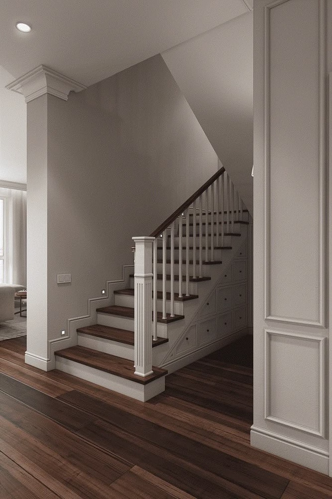 Будет потайная дверь, под лестницей разводка теплого пола скрыта , ну и поставим стеллажи для домашних мелочей))