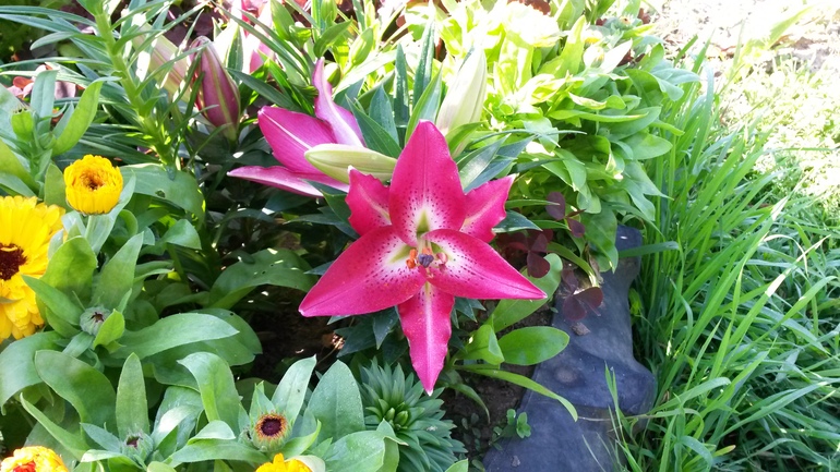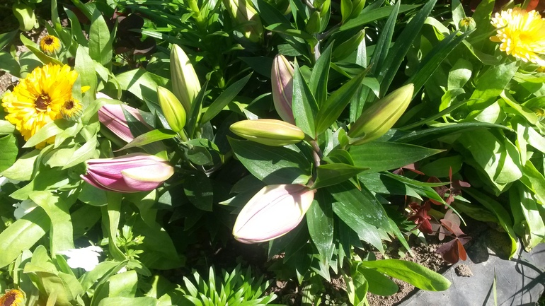Спасибо.Лилии здесь не все, большую часть уже срезали, чтобы поставить в вазу. А с георгинами в этом году у меня случился бзик