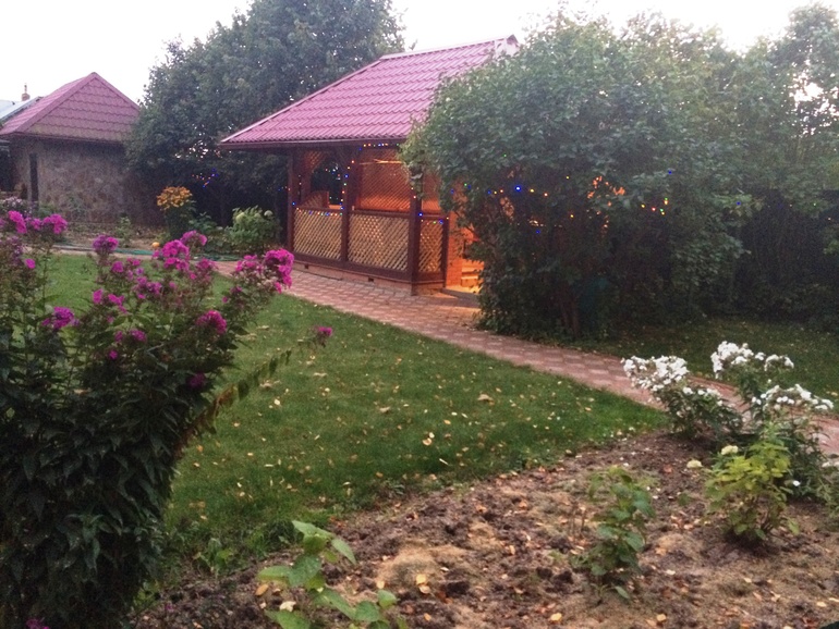 Большой благоустроенный участок, 1 машино-место во дворе, кирпичный гараж, большая беседка с барбекю, колодец, плодовые деревья, газон, электроворота. Асфальтированная дорога до дома. В деревне храм, магазин, стадион. Дом сдается в первый раз!